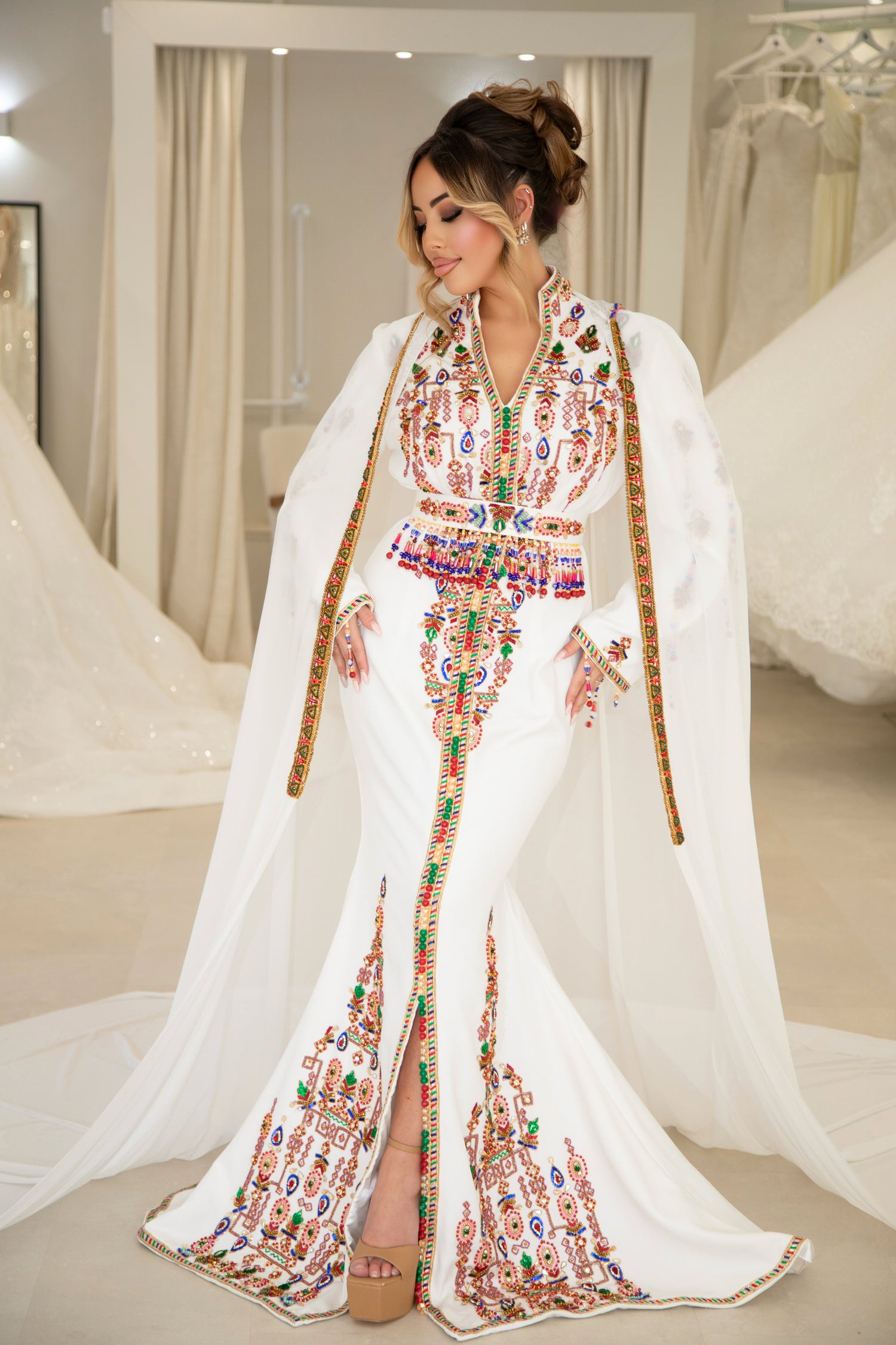 Célébrez la fusion du classicisme et de l'éclat contemporain avec notre Robe Kabyle Embellie, un trésor de couture pour vos moments traditionnels. Incrustée de broderies colorées et de détails lumineux, cette pièce fait écho à un patrimoine artisanal tout en se pliant aux exigences du style moderne. C’est le choix parfait pour une présence à la fois royale et culturelle.