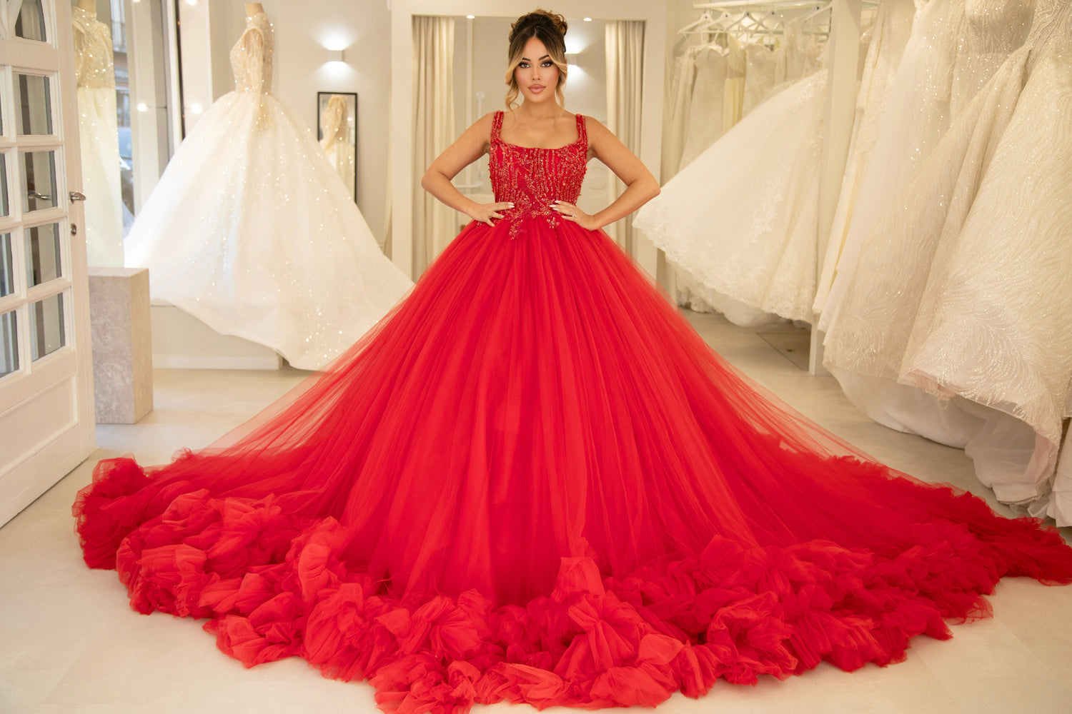 Éveillez les sens avec cette Robe Rouge Écarlate, un véritable spectacle visuel. La silhouette moderne et la richesse de la couleur se conjuguent avec des détails de perles pour créer un effet captivant. Cette robe est l'incarnation parfaite de la passion et du style, conçue pour marquer les esprits lors de votre événement.