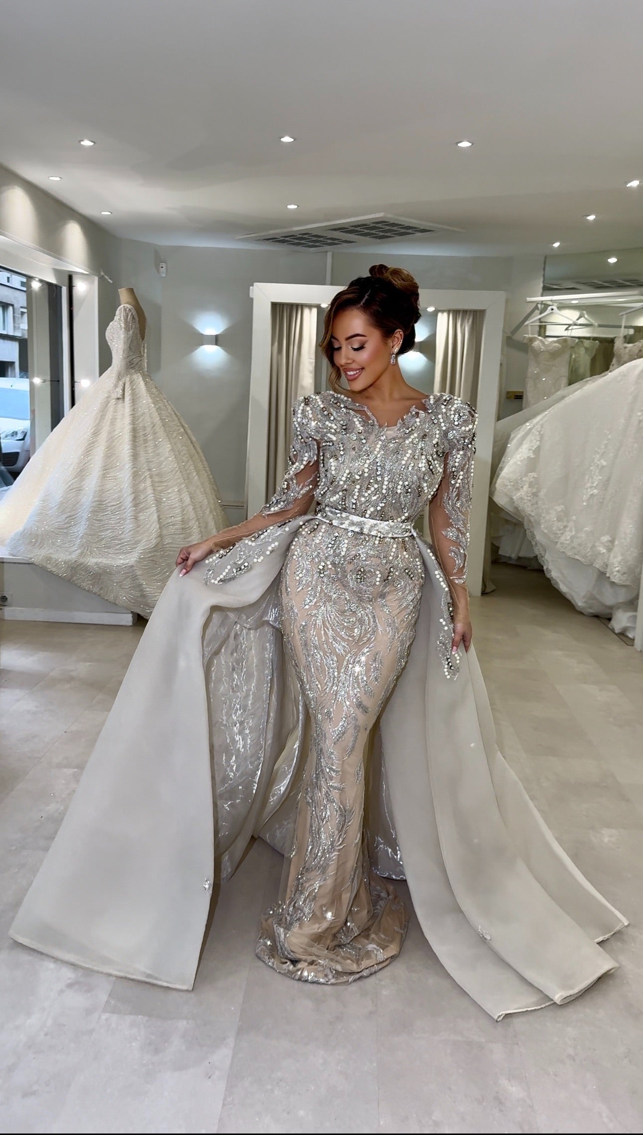 Entrez dans la lumière avec Perles de Lumière, une robe libannaise scintillante aux détails raffinés qui captivent dès le premier regard. Ornée de pierres argentées, cette pièce unique est l’incarnation du glamour et du raffinement pour une mariée exigeante. Avec sa coupe ajustée et ses manches longues, ce caftan vous assure une allure à la fois royale et moderne, idéale pour une prestation Negafa haut de gamme.